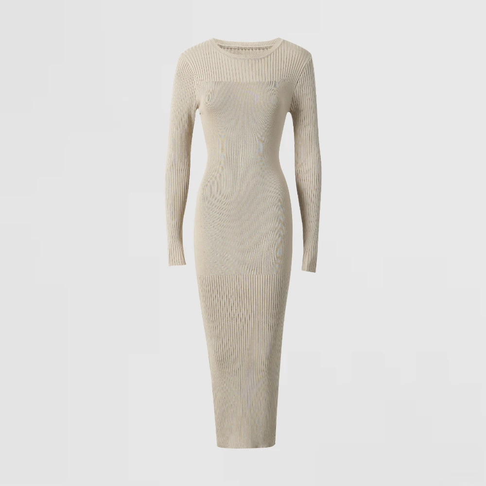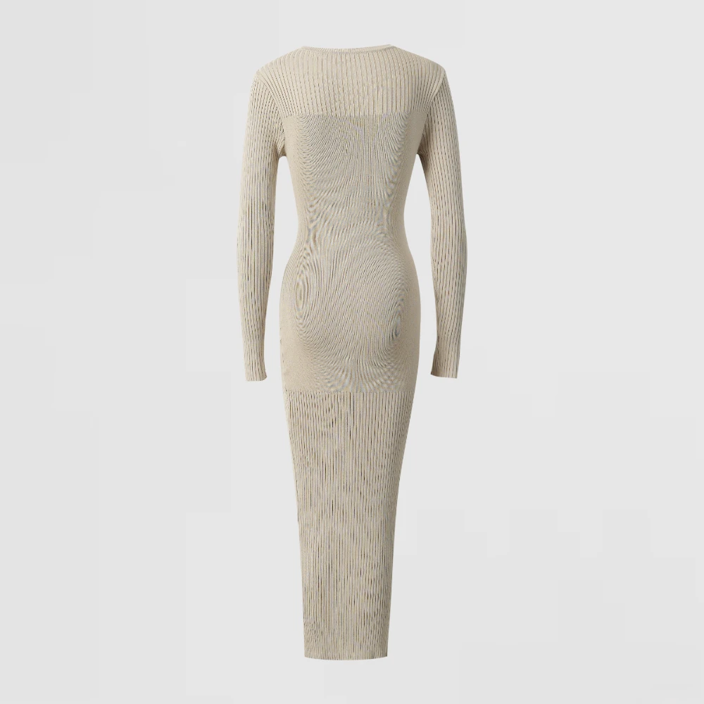 Beige Ribbed Knit Dress