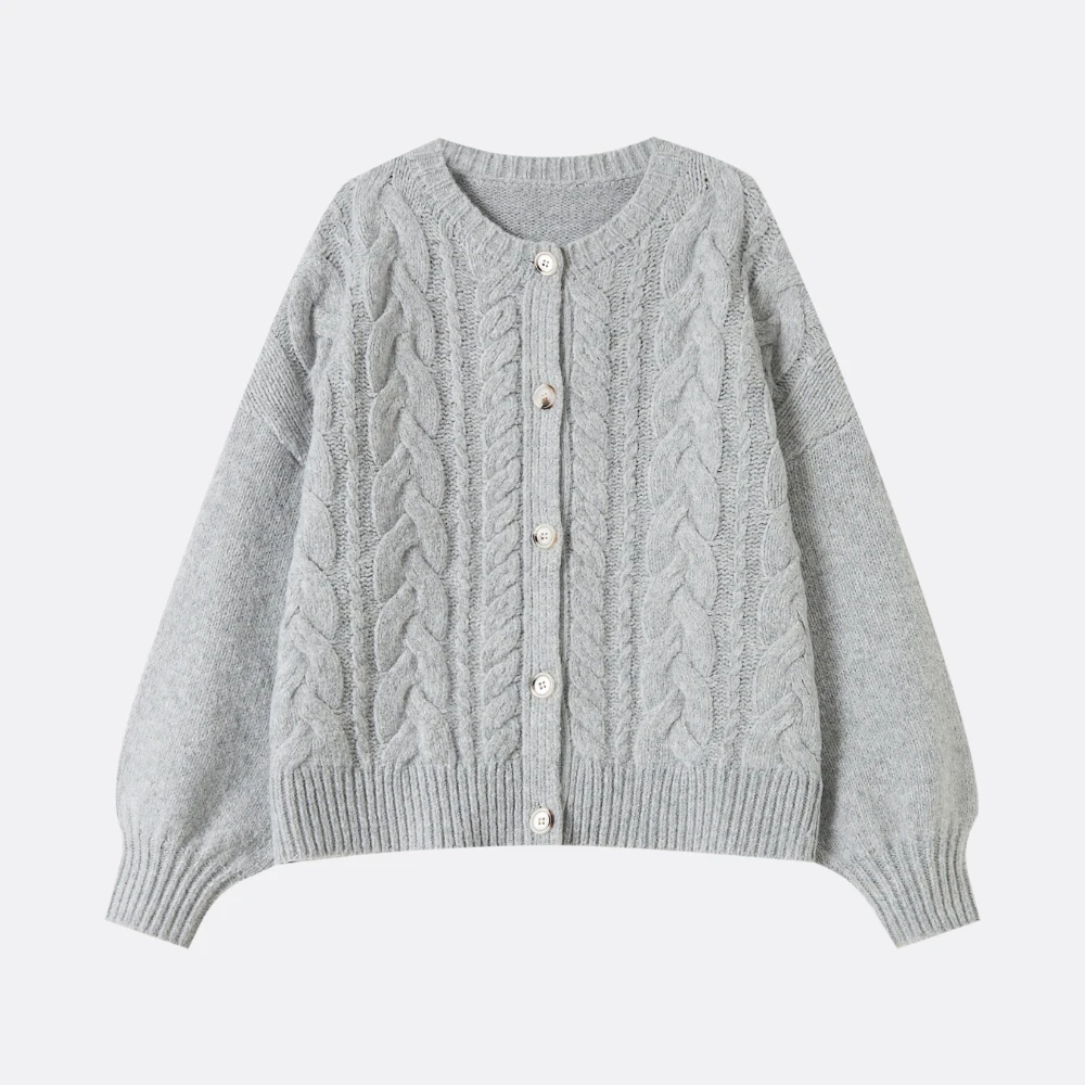 Grey Cable-Knit Cardigan
