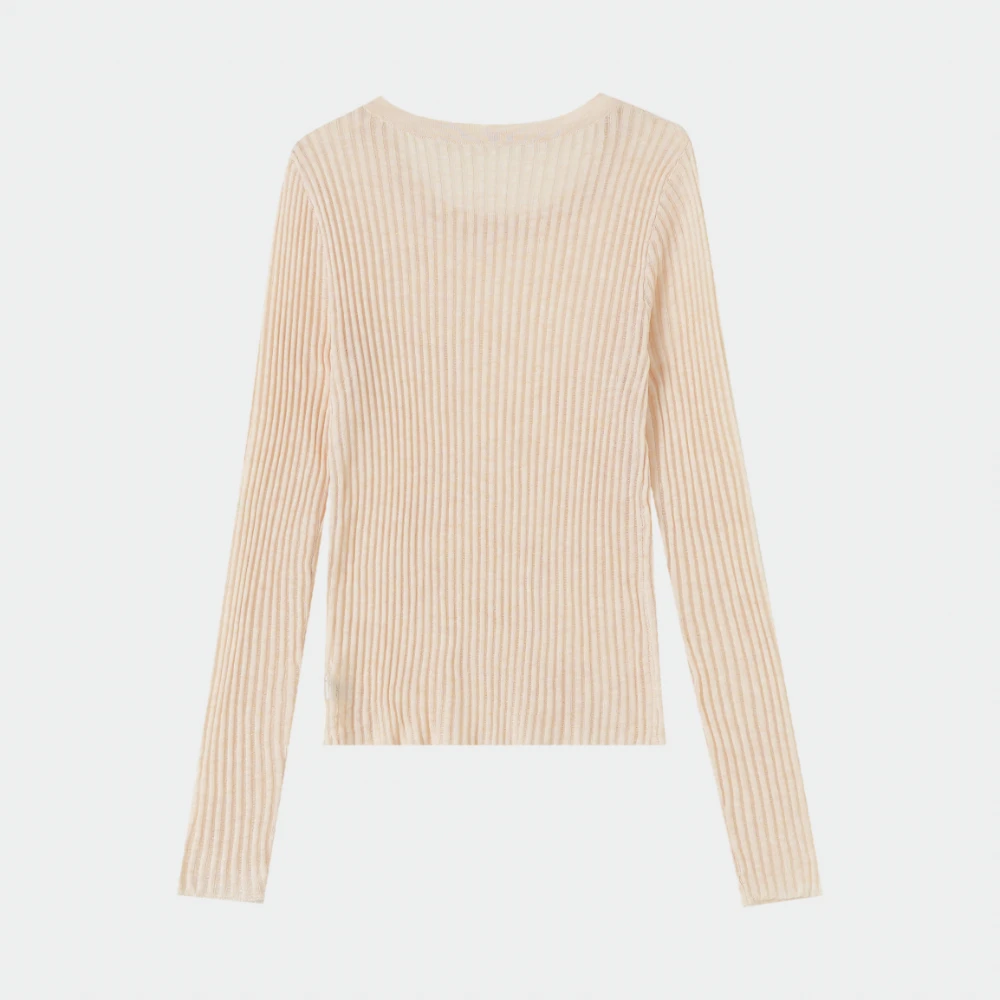 Light Beige Ribbed Knit Top