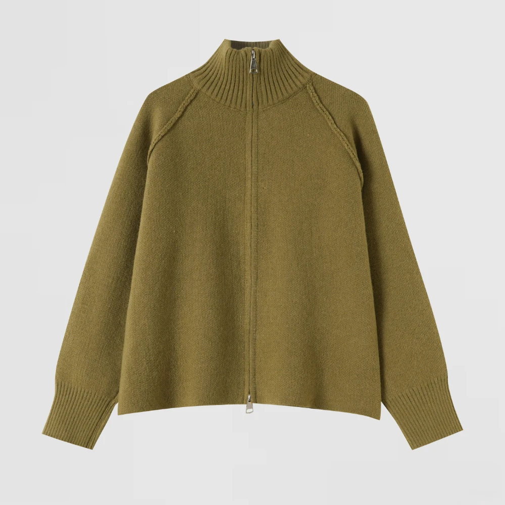 Olive High-Neck Zip Cardigan