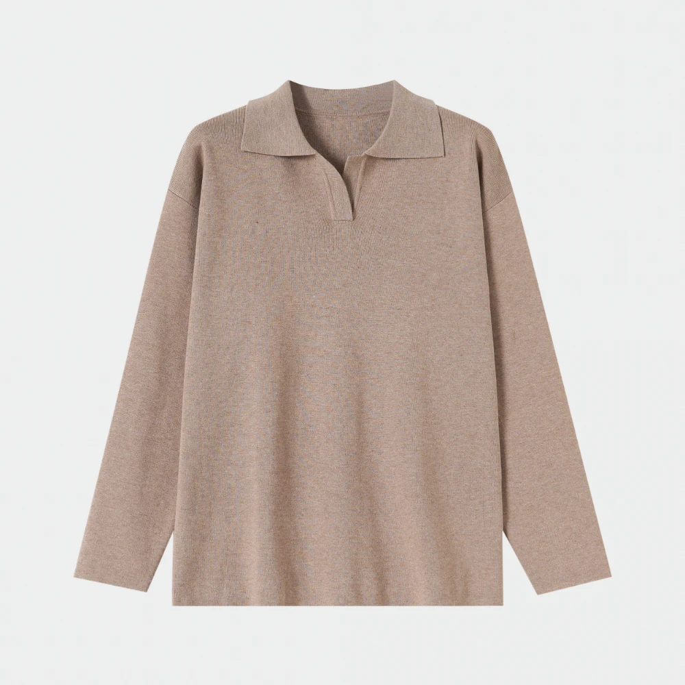 Taupe Knit Polo Top