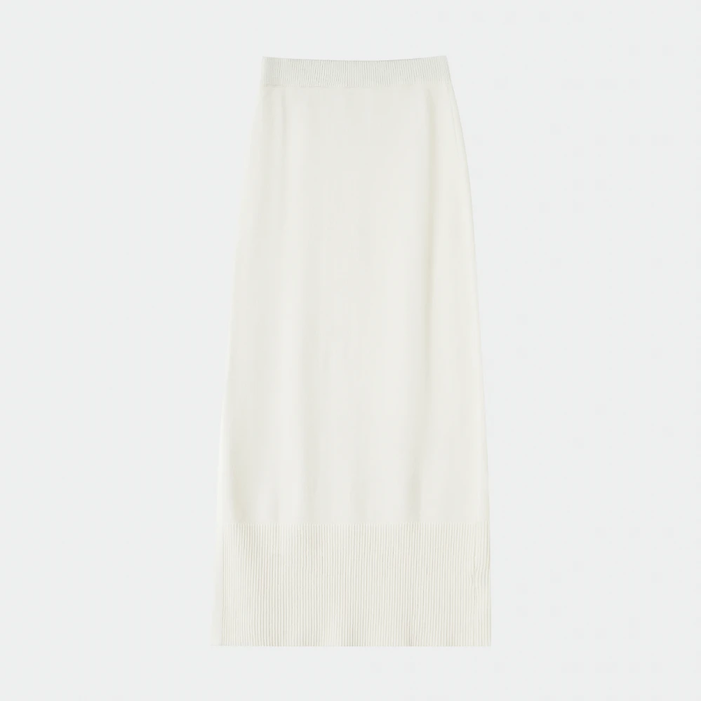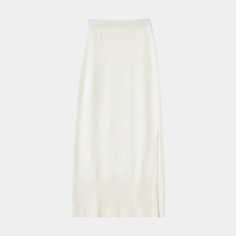 White Knit Midi Skirt with Side Slit